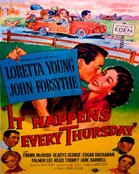 Loretta was committed to one final movie, It Happens Every Thursday, with John Forsythe at Universal Studios. "A bit of a nothing," was Loretta's assessment of that film.